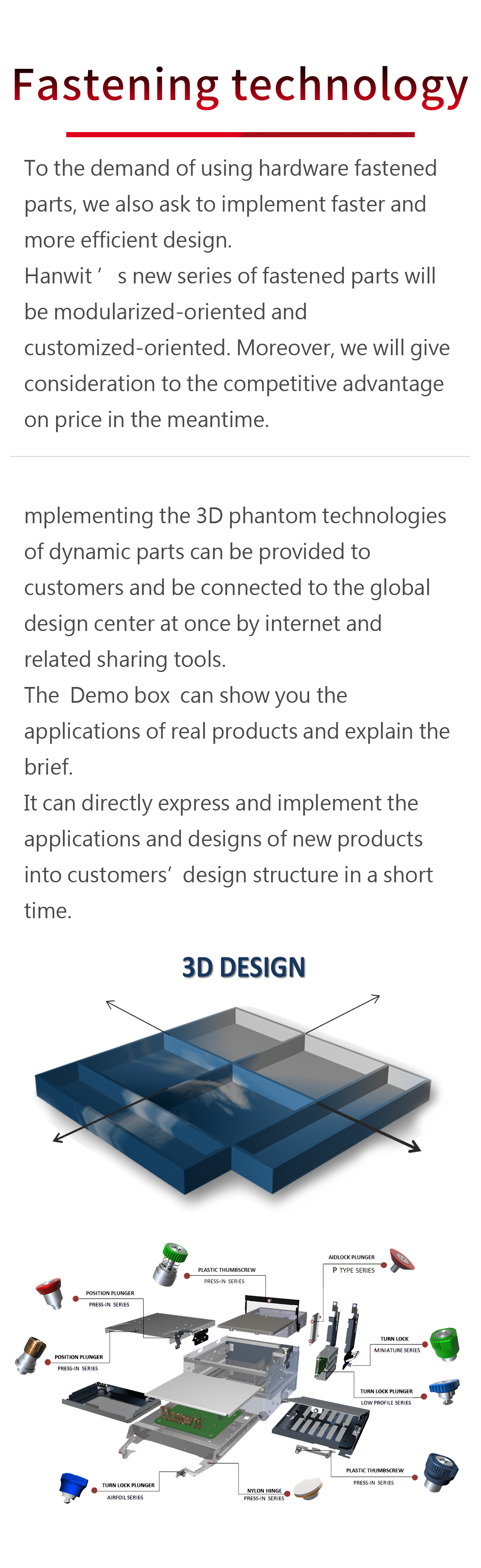 The founded spirit of Hanwit is following the ideal below: Redefine a simple part of a fastener and focus on the application of all fields.Research and develop diverse designs which conform to the structure of continuity and originality.With time evolution, Hanwit has deeper expectation with fasteners.